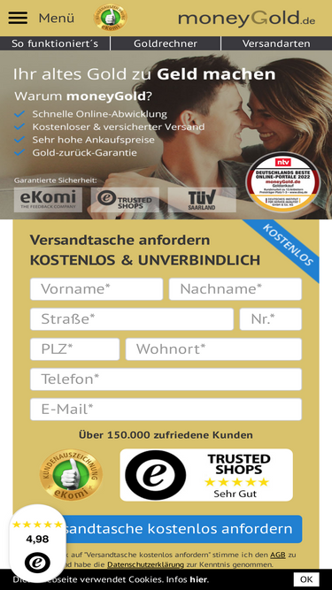 80%Sie haben sich für ✅ unseren Goldankauf entschieden! Hier haben Sie die Möglichkeit mit Ihren Versandmaterial mit dem Verkauf sofort zu starten.