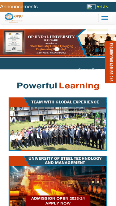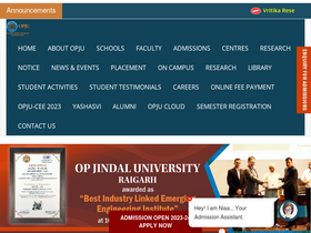 100%OP Jindal University, Chhattisgarh, offers admissions for 2025-26 in various fields such as Mechanical Engineering, Civil Engineering, Computer Science, Electrical Engineering, Metallurgical Engineering, BBA, MBA, Physics, Chemistry, Mathematics, Biotechnology, and more.