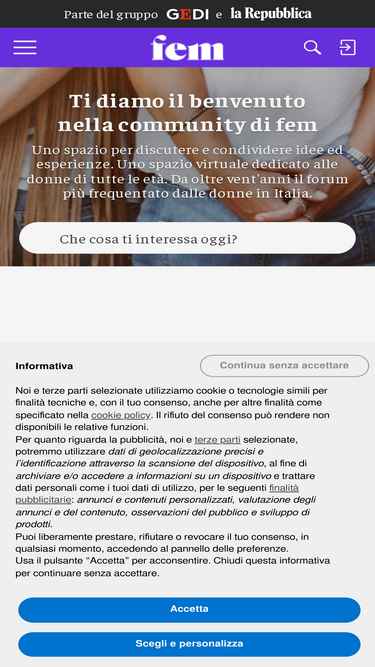 79%Uno spazio per condividere idee ed esperienze. Da oltre vent'anni il forum più frequentato dalle donne in Italia.