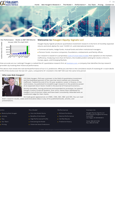 69%haugen systems: providing stock alphas, market rankings, and quantitative predications from our expected return factor model