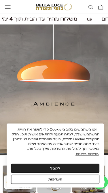 94%הצהרת נגישות לאתר https://gufeteura.co.il/ גופי תאורה בלה לוצ'ה פועלת לעמידה בהנחיות הנגישות הבינלאומיות 2.1 2.0, WCAG ו־2.2 ברמה AA, ובהתאםלתקן הישראלי ת״י .5568האתר מותאם לשימוש על ידי כלל האוכלוסייה, כולל אנשים עם מוגבלויות, ומציע תמיכה מלאה בטכנולוגיותמסייעות והתאמות נגישות מתקדמות להבטחת חוויית גלישה נוחה, ברורה