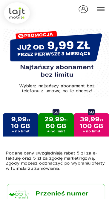 78%Najtańszy abonament komórkowy 5G bez telefonu już od 10 zł z rabatami! Umowa bezterminowa - na ile chcesz. Zamów online na lajt mobile!