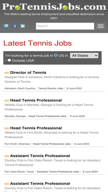 100%pro tennis jobs: tennis employment opportunities, tennis coaching jobs and tennis director jobs.