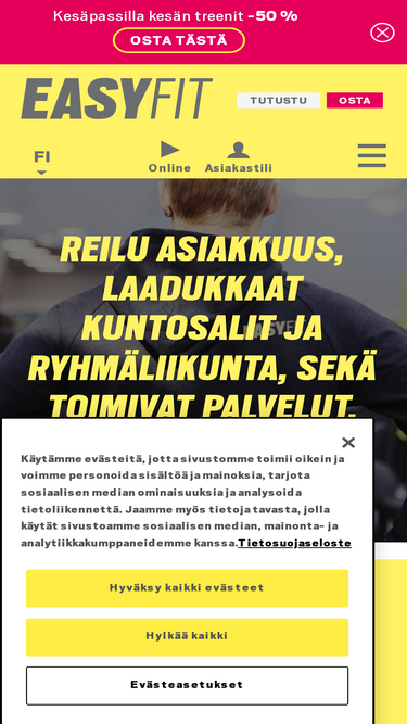 69%easyfit on monipuolinen ja kotimainen kuntokeskusketju. tilamme ovat tilavat ja tyylikkäät sekä laitteet laadukkaat ja helppokäyttöiset. keskuksestamme löydät laadukkaat ja nykyaikaiset technogym-kuntosalilaitteet.