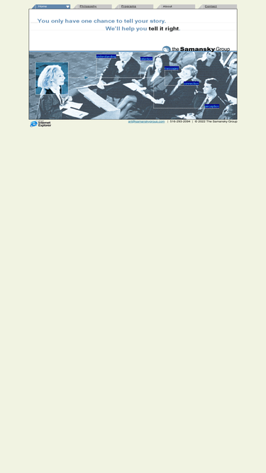 99%the samansky group are specialists in cost-effective strategic communications counsel, media, presentation and speech training services, and developing and implementing corporate educational seminars for domestic and international media.