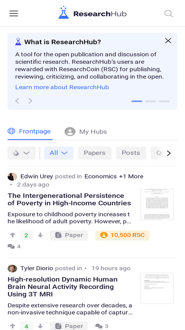 100%ResearchHub is a collaborative community seeking to improve prioritization, collaboration, reproducibility, and funding of scientific research. Join us to discuss and discover academic research.