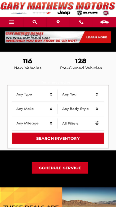 93%visit us and test drive a new or used ram or dodge truck, jeep suv or chrysler van at gary mathews motors. we've served hundreds of customers from fort campbell, hopkinsville, oak grove ky and springfield tn.