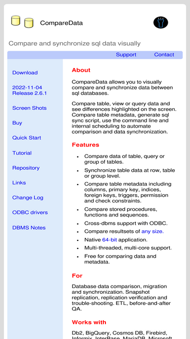 99%comparedata is a cross-dbms windows application that allows you to visually compare and synchronize data between sql databases using odbc drivers