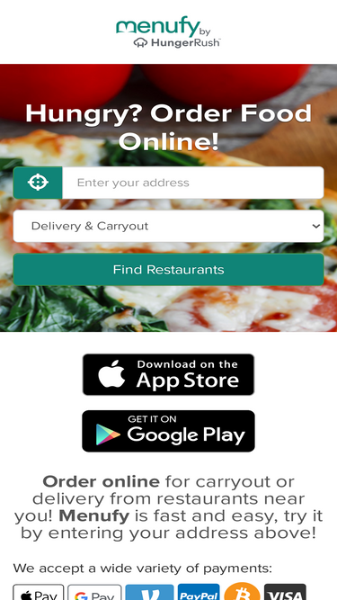 100%order online for carryout or delivery from restaurants near you and conveniently pay by credit card, apple pay, google pay, paypal, venmo, bitcoin, and more. menufy is fast and easy!