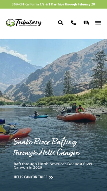 52%Experience the best whitewater rafting trips with Tributary Whitewater Tours. Choose from a range of rapid classes on thrilling California rafting trips, Oregon rafting trips, Idaho rafting trips, and American River rafting excursions.