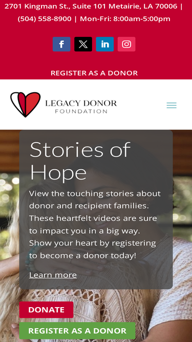 82%Our mission is to save and enhance the quality of life through organ and tissue donation and transplantation. Sign up as an organ donor
