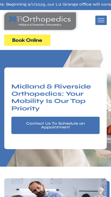99%Midland & Riverside Orthopedics delivers expert care across Chicago and its suburbs with short waits, same-day visits, and a team that puts patients first.