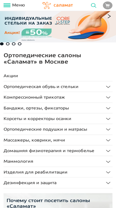 77%Сеть ортопедических салонов Саламат в Москве - это огромный выбор товаров для здоровья в наличии по приемлемым ценам. Ждем Вас в наших салонах!