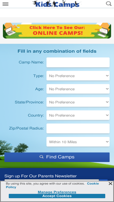 kidscamps.com is the internet's most comprehensive directory of summer camps, winter camps, and spring break camps, including traditional overnight camps, day camps, teen tours, study abroad programs, and a variety of specialized camps and programs for children and teenagers of all ages.