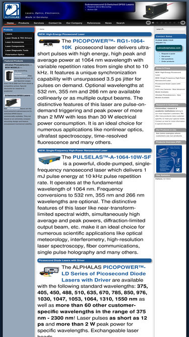 90%dpss lasers - q-switched, cw, modelocked, laser kits, laser diode drivers, photodetectors/photodiodes, waveplates, laser crystals, nonlinear crystals, laser & optical components
