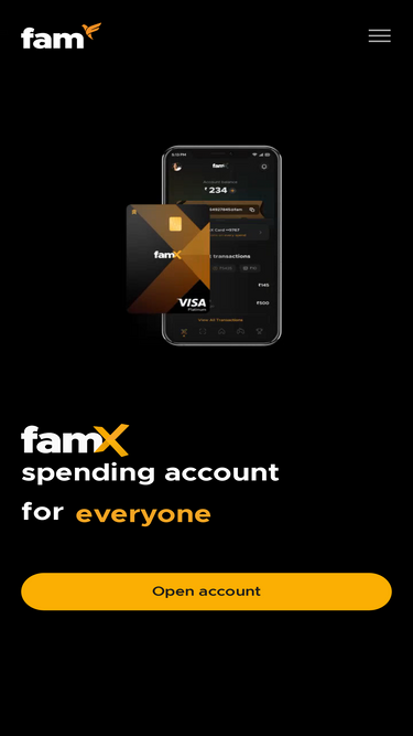 FamX Spending Account for everyone · Get a customised card & UPI ID · Keep your bank statements clean · Track & keep expenses in check · Open for ages 11+