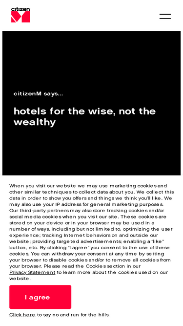 95%citizenM hotels offer affordable luxury in exciting cities in the world: London, Paris, New York, Copenhagen and many more. Free wifi and XL beds as standard.