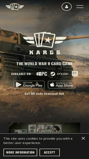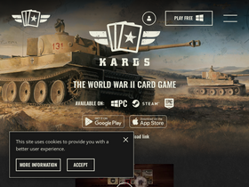 85%KARDS is a free-to-play digital strategy card game that anyone can play and enjoy. Players select one of five major powers from WWII and one ally nation to play as. They create a deck of 40 cards to play from against other players or the AI. They take turns playing cards to play out units or orders to take down the defense of the enemy HQ.