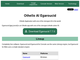 90%オセロAI Egaroucid 世界最強レベルのオセロAI Egaroucid を搭載したフリーソフトウェアです。搭載AIはコンテストで世界1位になった自作AIをベースに改良したものです。