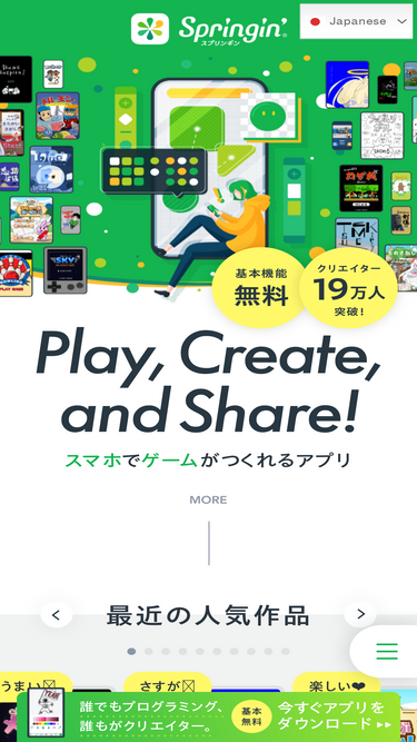 96%Create in Springin'. With intuitive operation, you can create your first work in 20 minutes. Coding knowledge is not necessary. Limitless creative work imaginable.