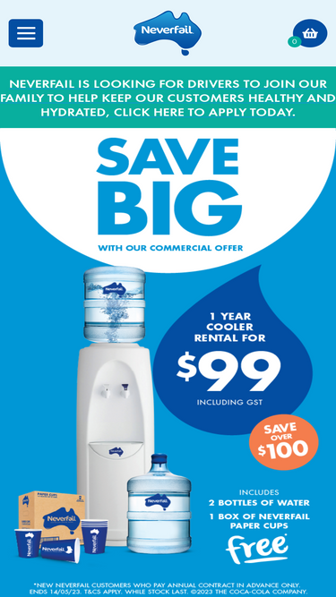 81%discover neverfail's premium water delivery services across australia. shop bulk spring water dispensers & accessories. hydrate your space now!