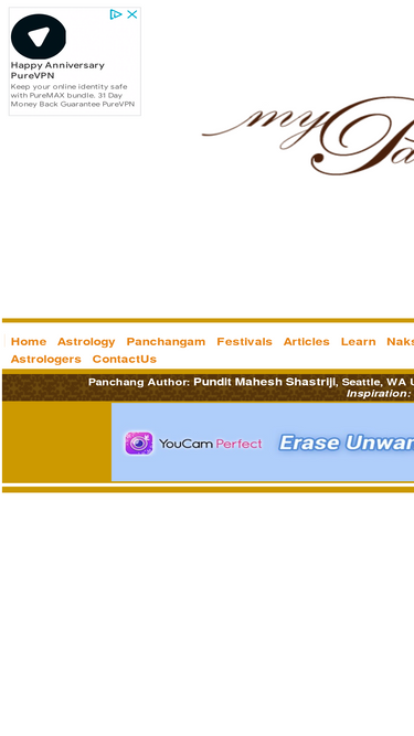 90%This page provides daily panchang (also called as panchangam) for most cities in the world. This page also lists countdown timer for upcoming fasting days and festivals for most cities in the world.
