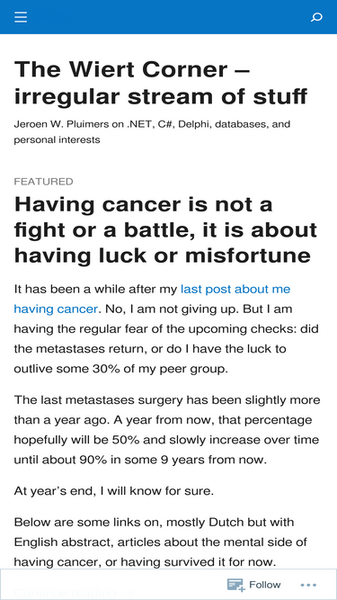 85%Jeroen W. Pluimers on .NET, C#, Delphi, databases, and personal interests