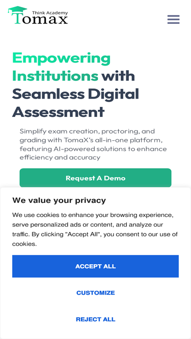68%Request a Demo See Tomax’s solutions in action Ready to experience the power of Tomax's innovative exam management solutions? Request a demo today and discover how we can help streamline your exam processes, ensure exam integrity, and provide students with a seamless exam experience. Our team of experts is here to answer any questions you