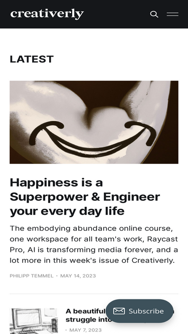 57%In this week's issue of Creativerly: Think like a Writer, the naked blogging platform for minimalists, Good Work Hacks, and a lot more.