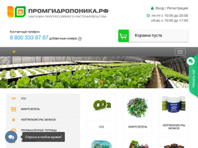 88%компания "промгидропоника" предлагает все, что нужно для гидропонного выращивания растений: системы капельного полива для сада и огорода, удобрения, лампы, светильники для досвечивания рассады и ведения светокультуры в теплицах, субстраты, гидропонные установки, вентиляция, контроль уровня ph, и многое другое. гидропоника в россии.