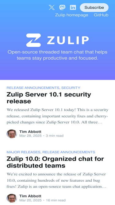 92%Today, we’re delighted to announce the general availability of Zulip’s public access option. Open-source projects and other open communities can now offer one-click access (no login required!) to part or all of their Zulip chat. For those who are not familiar with it, Zulip is a modern team collaboration …