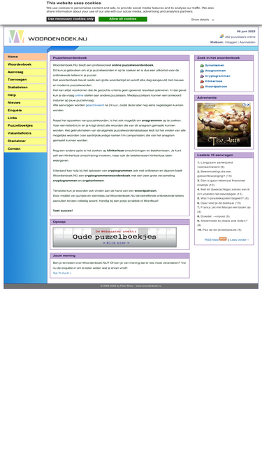 100%professioneel online puzzelwoordenboek voor het opzoeken van synoniemen, cryptogrammen, anagrammen, woordpatronen en klinkerloze omschrijvingen. ontbrekende woorden kun je aan de webmaster vragen en desgewenst online plaatsen.