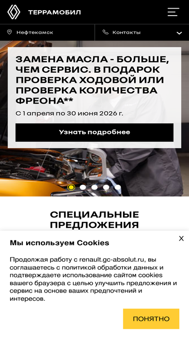 77%у официального дилера renault террамобил в нефтекамске вы можете купить автомобиль по выгодным ценам в рассрочку или кредит. заказать автомобиль в онлайн-шоуруме на сайте renault.gc-absolut.ru записаться на сервис.