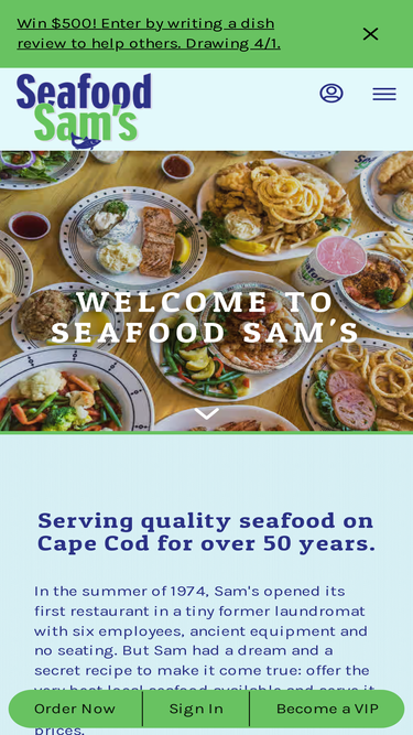 100%Seafood Sam's in Falmouth, MA. Family-friendly, quick service restaurant serving fresh, deep-fried seafood and much more!