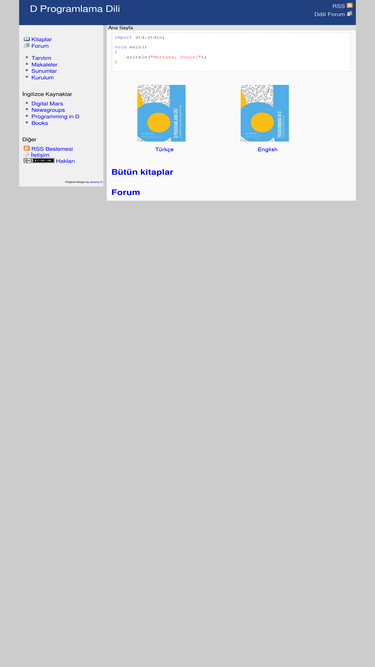 72%türkçe d programlama dili kitabı, forum, dil ile ilgili belgeler, makaleler, kod örnekleri, forum, haberler, ve başka çeşitli bilgiler