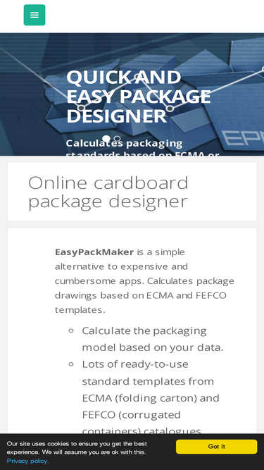 87%cardboard package generator. calculates packaging standards based on ecma or fefco catalogs