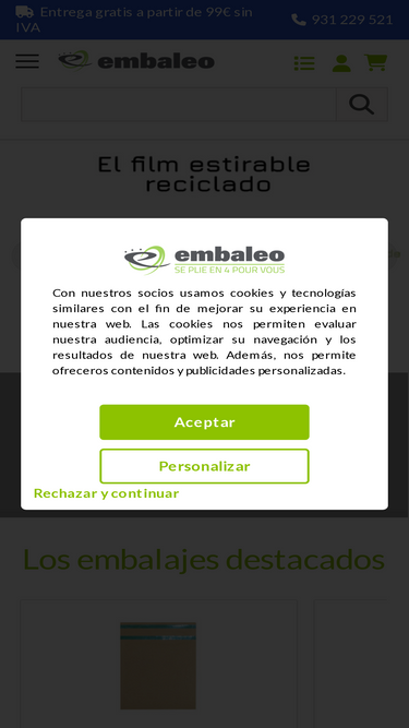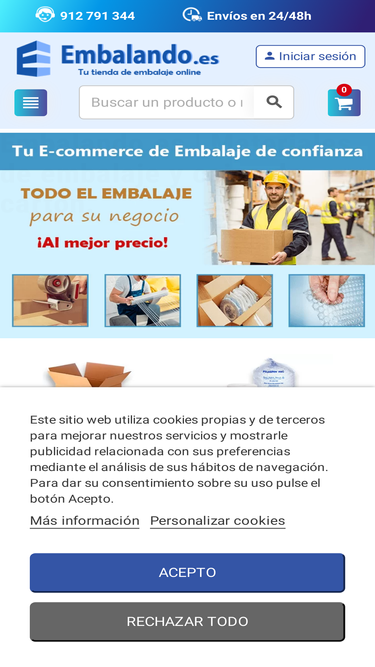 88%Material de embalaje profesional. Amplia gama de cartones, rellenos, bolsas, sobres, films de protección y embalajes alimentarios en Embaleo. Entrega 48/96h