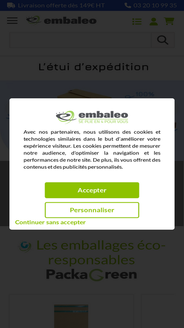 86%Embaleo, votre fournisseur d'emballages, vous propose une large gamme : adhésif, boite en carton, emballage carton. On se plie en 4 pour vous! Livraison offerte dès 149€HT.