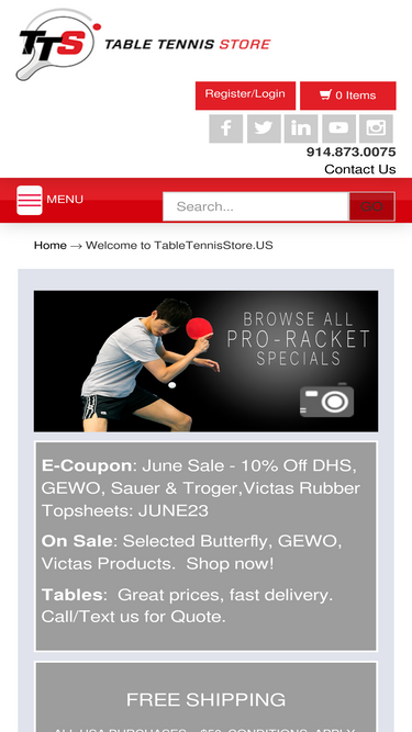 professional table tennis equipment store for the table tennis player. quickest shipping, lowest prices, fanatical customer service. rackets, robots, tables, blades, rubber sheets, balls and more.