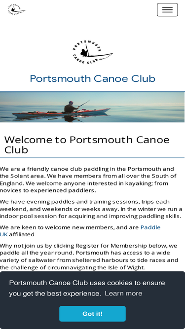 We are a friendly canoe club paddling in the Portsmouth and the Solent area. We have members from all over the South of England. We welcome anyone interested in kayaking; from novices to experienced paddlers. We have evening paddles and training sessions, trips each weekend, and weekends or weeks