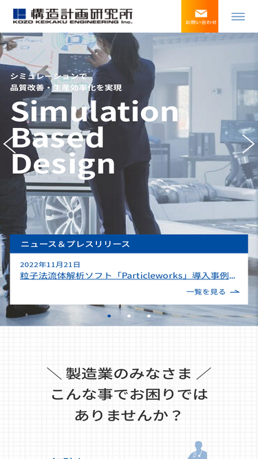 81%構造計画研究所 SBDプロダクツサービス部・SBDエンジニアリング部は、3次元設計手法「Simulation Based Design」に基づいた設計者CAEツールの販売をはじめ、それらの導入や運用に関する各種コンサルテーションを行っております。