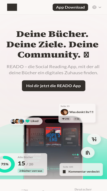 54%Alle deine Bücher finden ein digitales Zuhause mit READO - der Social Reading App.