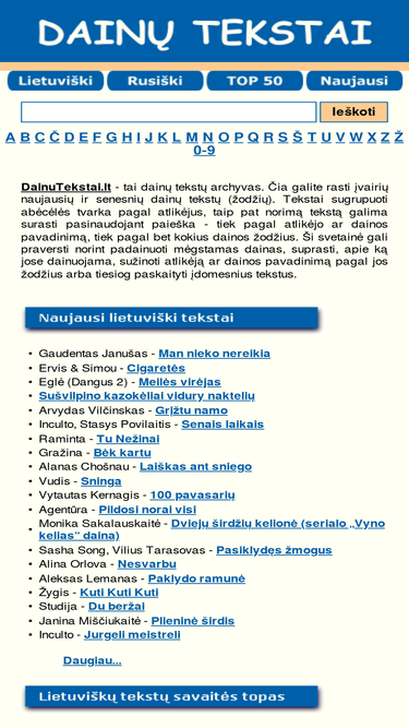 naujausių, populiariausių ir senesnių lietuviškų ir užsienio dainų žodžiai, videoklipai