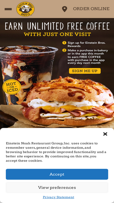 96%View the Einstein Bros. Bagel's FAQs and get the answers to our most frequently asked questions quickly. Looking to contact us, find it here.