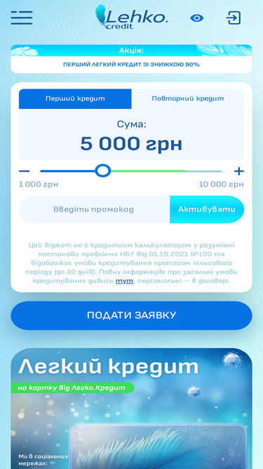 97%Для нових клієнтів Всі нові клієнти, які подадуть заявку на кредит на сайті lehko.credit під час акції, можуть отримати знижку до 90%. Розмір знижки визначається автоматично на основі вашої кредитної історії: чим вона краща, тим більшу знижку ви отримаєте. Для повторних клієнтів Якщо ви вже брали перший кредит і хочете отримати знижку на наступний, підпишіться […]