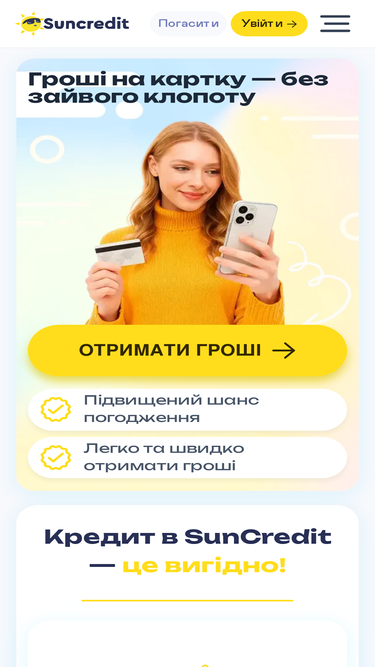 84%кредит онлайн для всіх жителів україни. видаємо кредит на картку для нових клієнтів з мінімальною процентною ставкою 0,01% на день. ви можете взяти до 15 000 гривень. швидке оформлення кредиту через bankid нбу з мінімальним пакетом документів