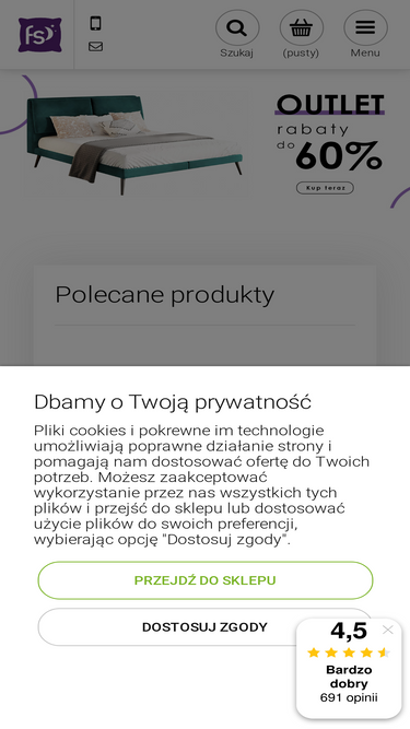 77%Selsey oferuje dobre jakościowo meble oraz stylowe dekoracje w atrakcyjnych cenach. W ofercie m.in. materace ze standardem OXAM, narożniki, łóżka tapicerowane, meble młodzieżowe i dziecięce a także oświetlenie oraz dywany. Stwórz mieszkanie swoich marzeń bez wychodzenia z domu.