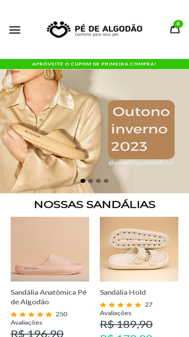 86%Conforto e Maciez que você só entra na Pé de Algodão, um novo estilo e tendência, produtos únicos com o melhor preço do mercado, calçados de qualidade para o seu conforto do dia a dia.