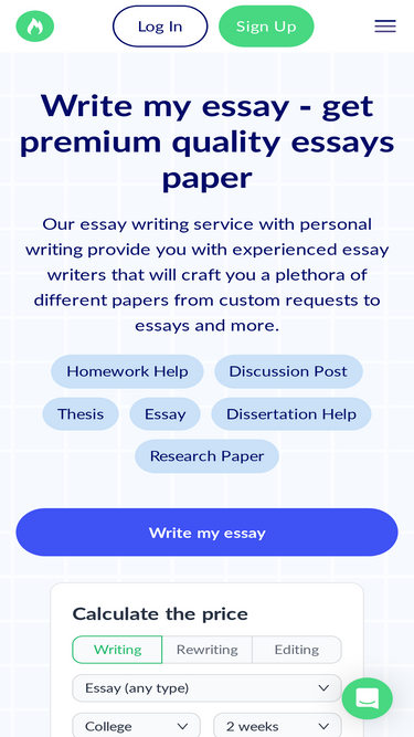 100%Hire professional essay writers from $5.40/page. ✓ 100% human expertise ✓ Fast turnaround ✓ Secure essay writing service ✓ Approve work before payment.