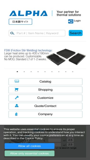 89%alpha company ltd./alpha novatech inc home page -- introduction of high performance heat sink made by microforging.